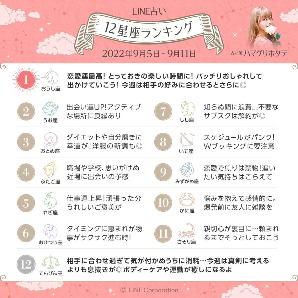 今週今週の12星座ランキング🌟2022.9.5〜11
