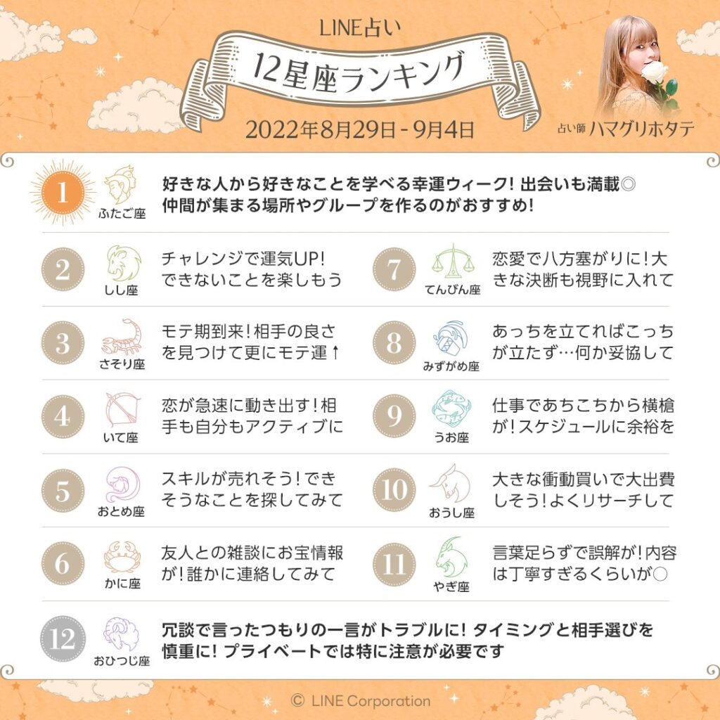 今週の12星座ランキング🌟2022.8.29〜9.4