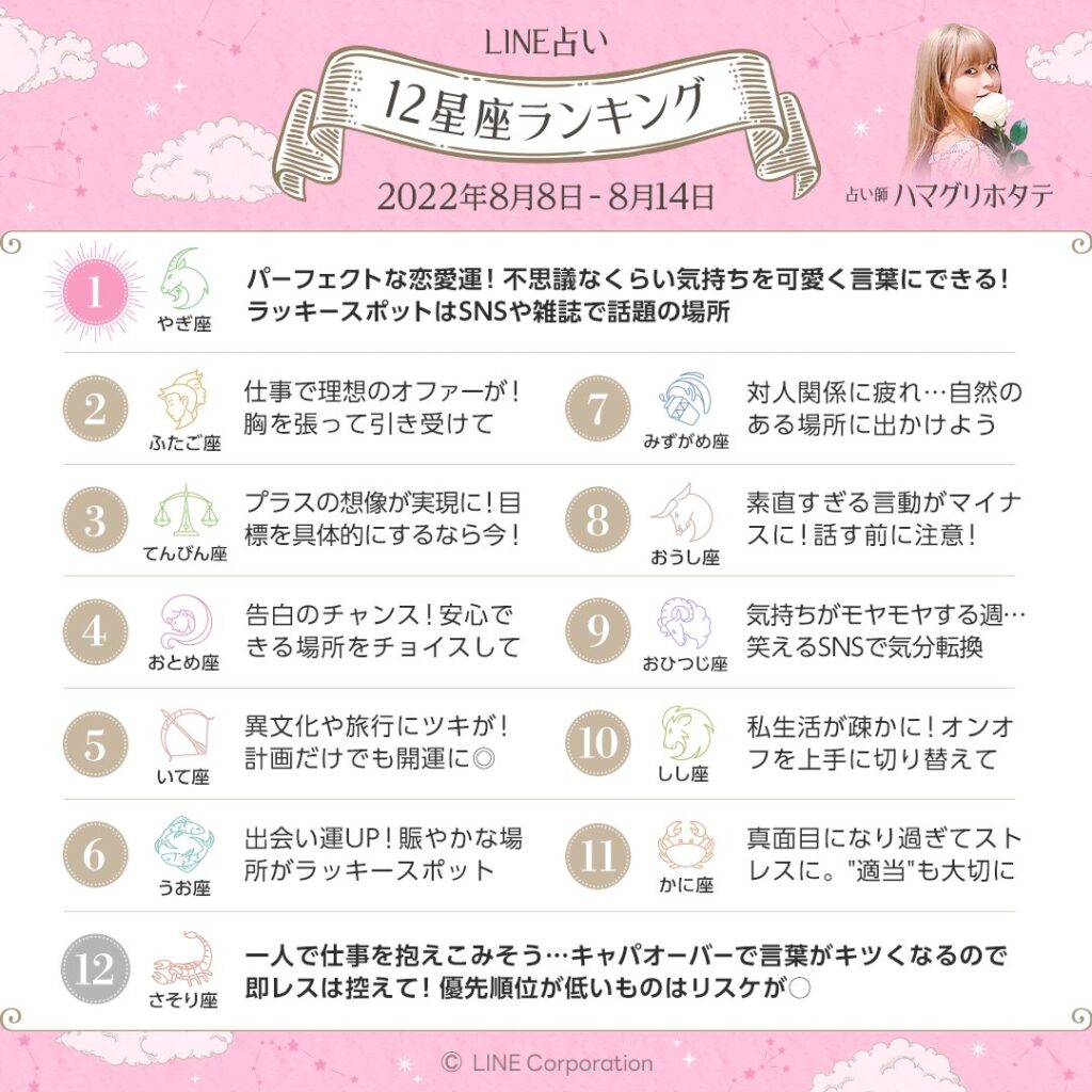 今週の12星座ランキング🌟2022.8.8〜14