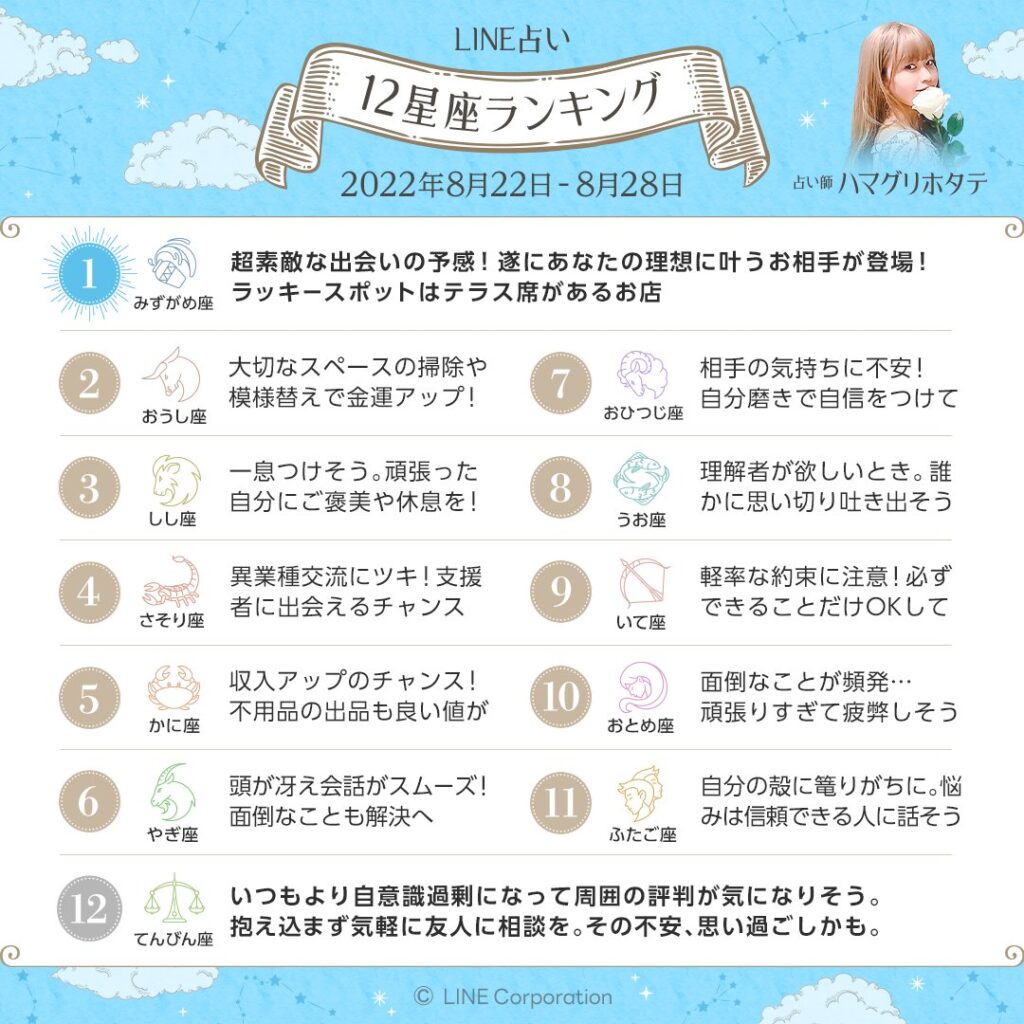 今週の12星座ランキング🌟2022.8.22〜28