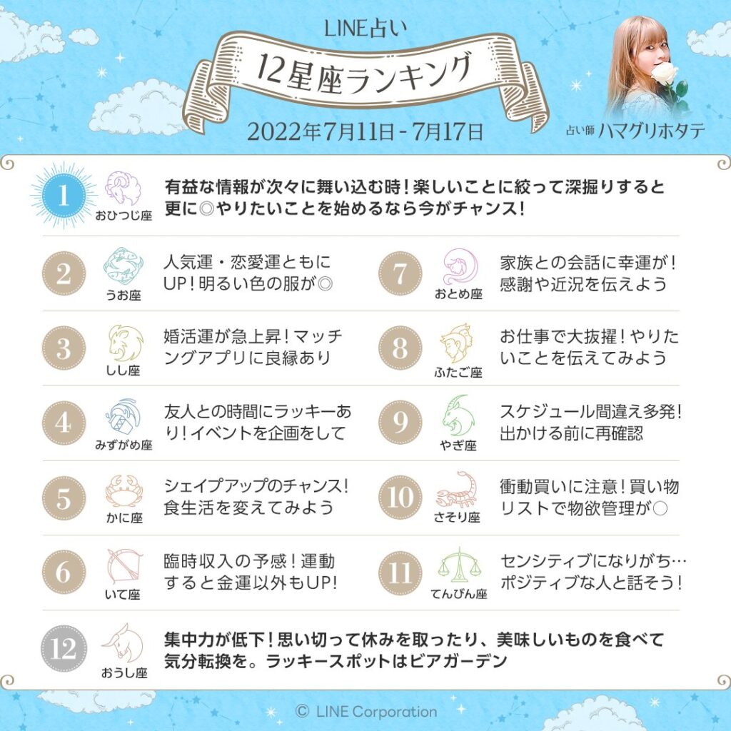 今週の『12星座ランキング』配信開始いたしました😊 🌈週間予報的な感覚です✨✨✨月の運勢と併せて、チェックしてみてください✨ちょっとしたことから開運体質へ٩(๑❛ᴗ❛๑)۶💕 7... -